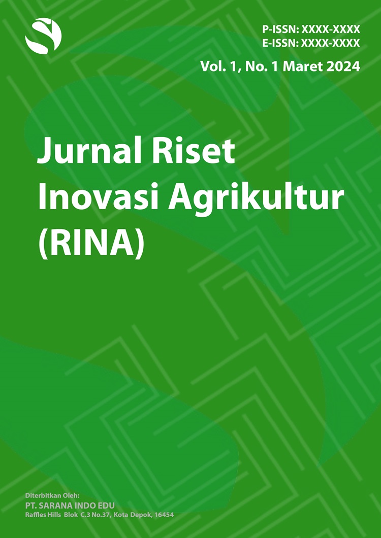 Jurnal Riset Inovasi Agrikultur (RINA) adalah publikasi akademik yang memainkan peran penting dalam mendorong dan menyebarkan pengetahuan terkini dalam bidang pertanian dan inovasi di seluruh dunia. Dengan fokus yang kuat pada riset, pengembangan teknologi, dan inovasi dalam sektor pertanian, Jurnal RINA bertujuan untuk menjadi platform utama bagi para peneliti, ilmuwan, praktisi, dan pemangku kepentingan lainnya untuk berbagi temuan, pengalaman, dan ide-ide terkait pertanian yang berkelanjutan dan berwawasan masa depan. Diterbitkan oleh SARANA INDO EDU secara berkala pada bulan Maret dan September
